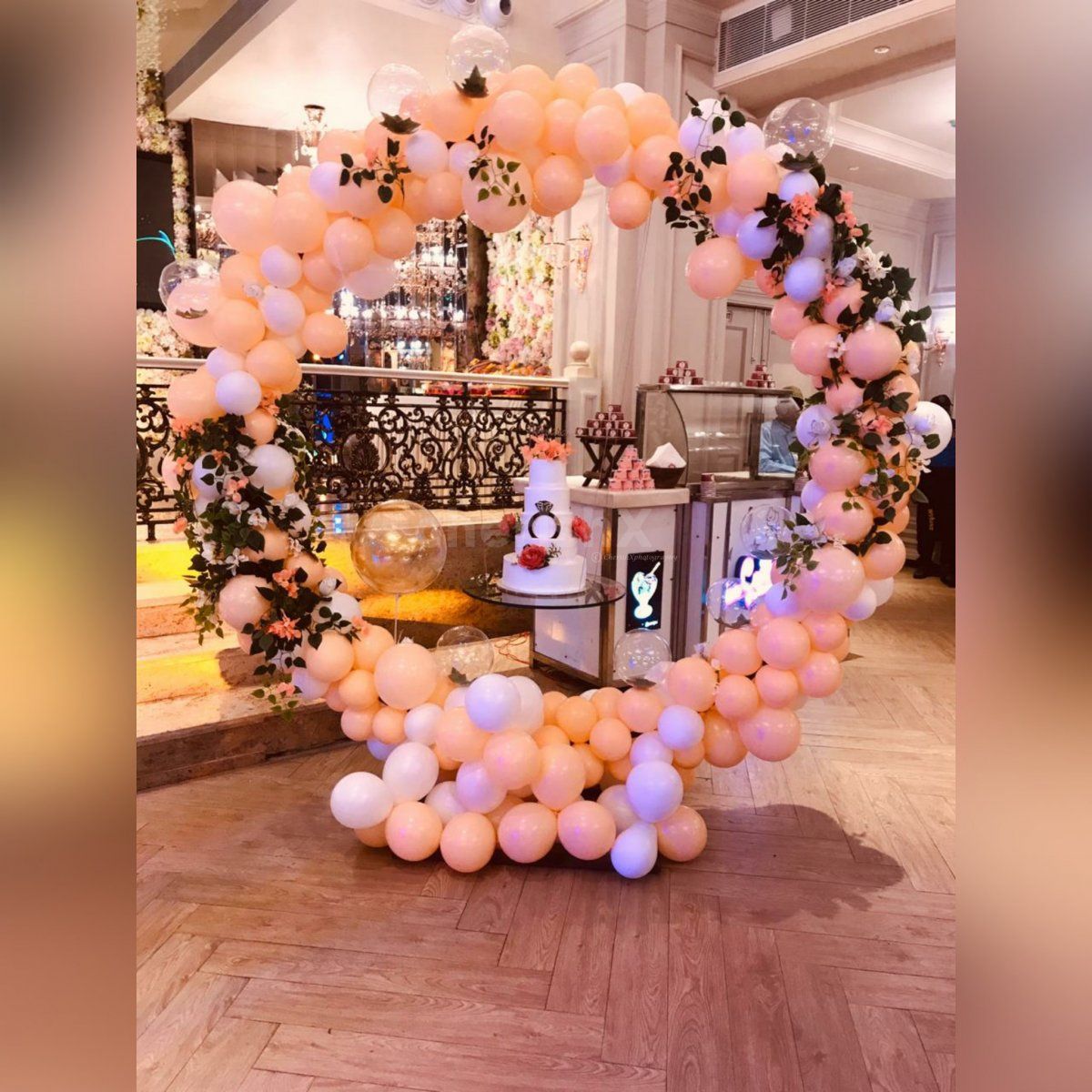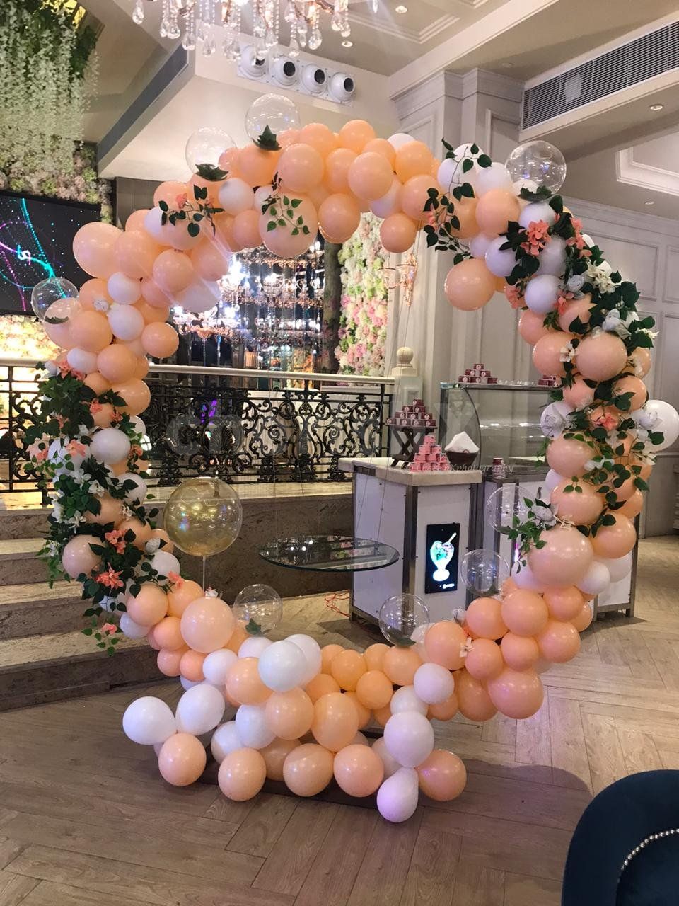 6 Feet Ring Backdrop with 350 balloons : 100 white latex and 250 pastel peach balloons
