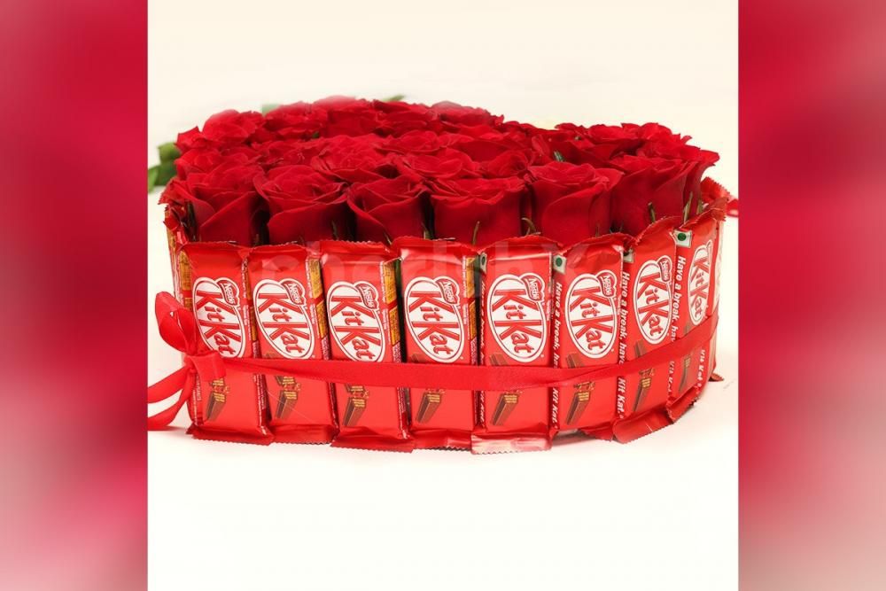 CherishX red rose is picked fresh from the farm and delivered to your special recipient. Order 34 Red Roses with a delicious 26 Kitkat Chocolates (12gm each) combo for a simple yet romantic gesture to your love ones delivered anywhere in Delhi, Gurgaon, Noida, NCR, Bangalore, Jaipur, Hyderabad.