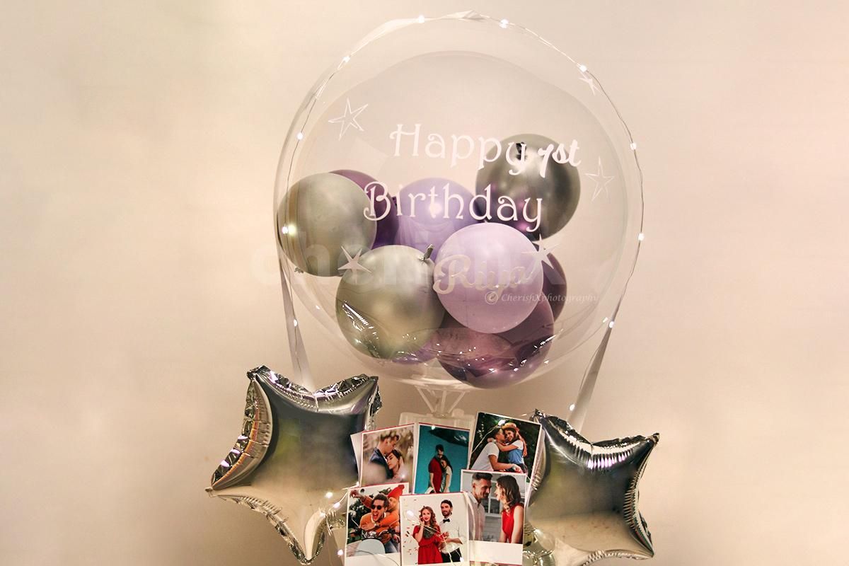 Send warm wishes to your close ones on anniversaries and birthdays by booking CherishX’s Pastel Purple Balloon with Star Photobucket. Make their day wonderful with photos and balloons filled bucket!