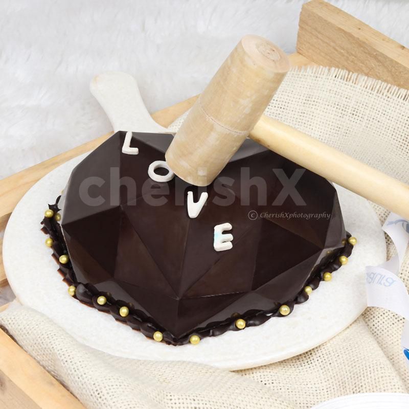 Pinata Cake is one of the trends when it comes to celebrating any accasion. It's super fun, delicious and it's all chocolate. Comes with a cutesy hammer to smash the chocolate shell & also a lovely tag. Diamond Heart-shaped Pinata Cake is the current obsession of everyone hit with the Hammer to Kitkat Chocolates, Two Ferrero Rocher & few Gems and love written on it. Exclusively for our cake lovers. You are going to love it.