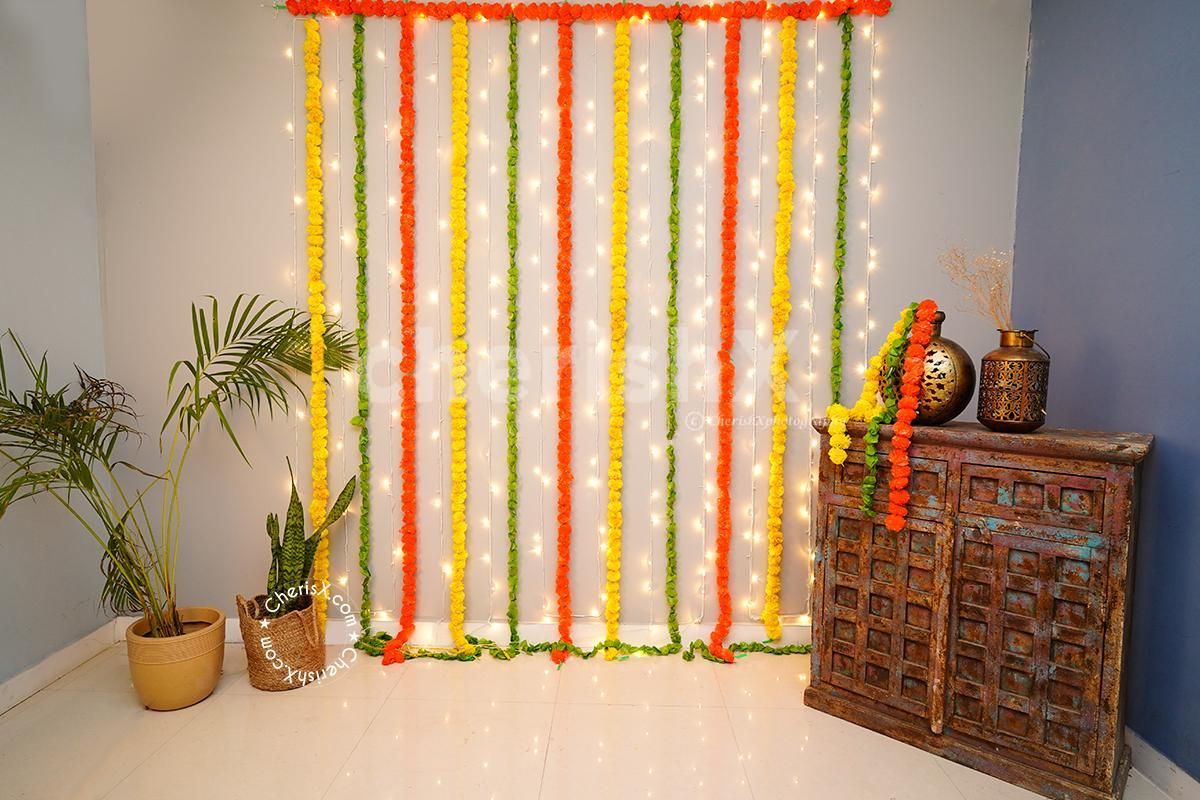 Lights and flower garlands will be placed on wall with the help of the tape.