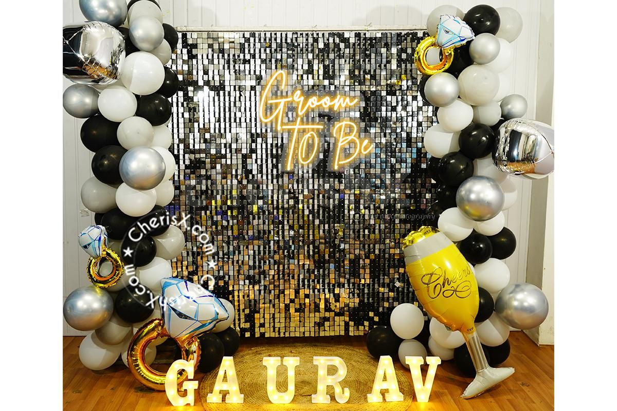 An unforgetable night for the boys and groom with our Silver Sequin Groom To Be Decor