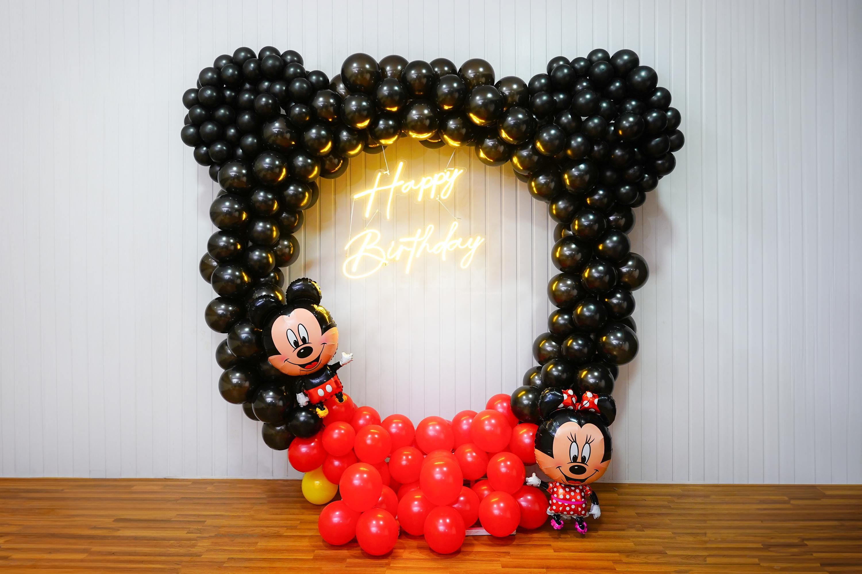 Make your child's birthday party an enchanting fun affair with our delightful Mickey Mouse Ring Birthday Decorations! Picture your little ones' faces lighting up with excitement as they step into a magical world of Mickey Mouse wonders. This special-themed setup is designed to create the ultimate fun and joy for your child's big day. From the adorable Ring stand Happy Birthday Neon light to the abundance of balloons in black metallic and red latex, every element promises to make the celebration truly extraordinary. Get ready to witness the magic unfold as your little star and their friends bask in the joy of their real-life Mickey Mouse decorations!