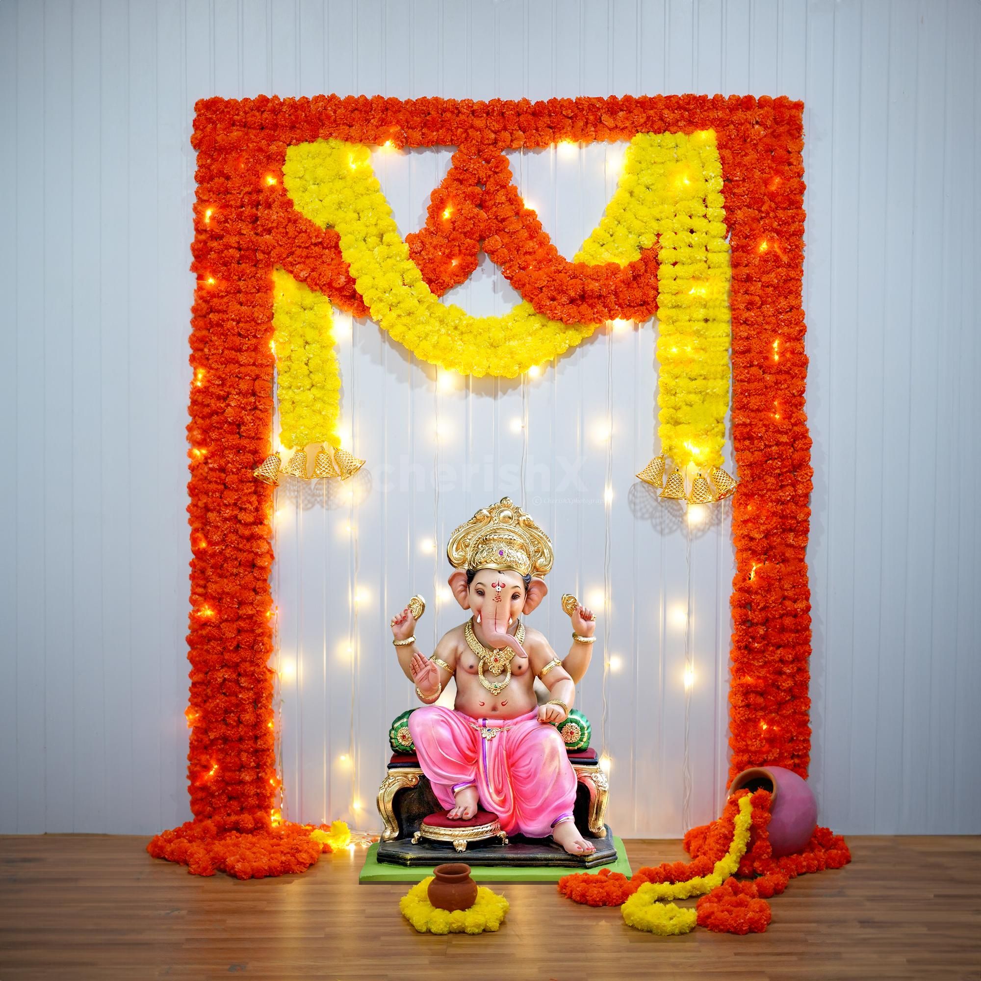 Special Ganesh Chaturthi Decorations with Traditional Marigold Flowers