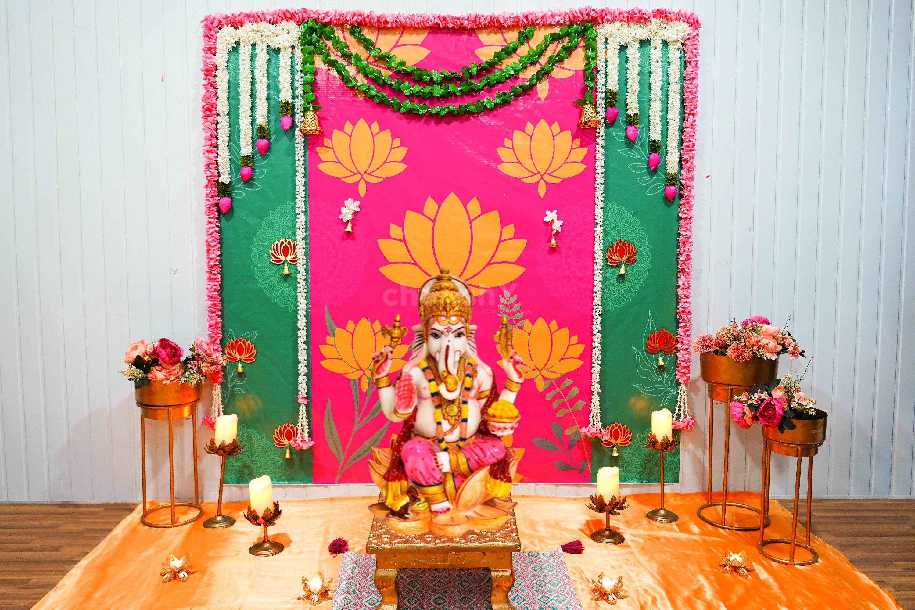 Radiate Festive Charm At Home with a Lotus-Themed Backdrop Decoration