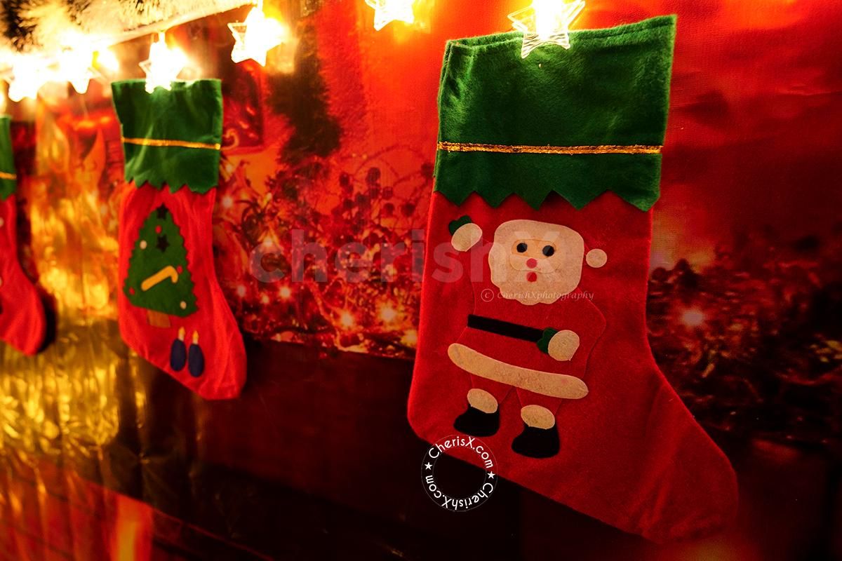 4 Socks hanged with 1 Led Star Clip light