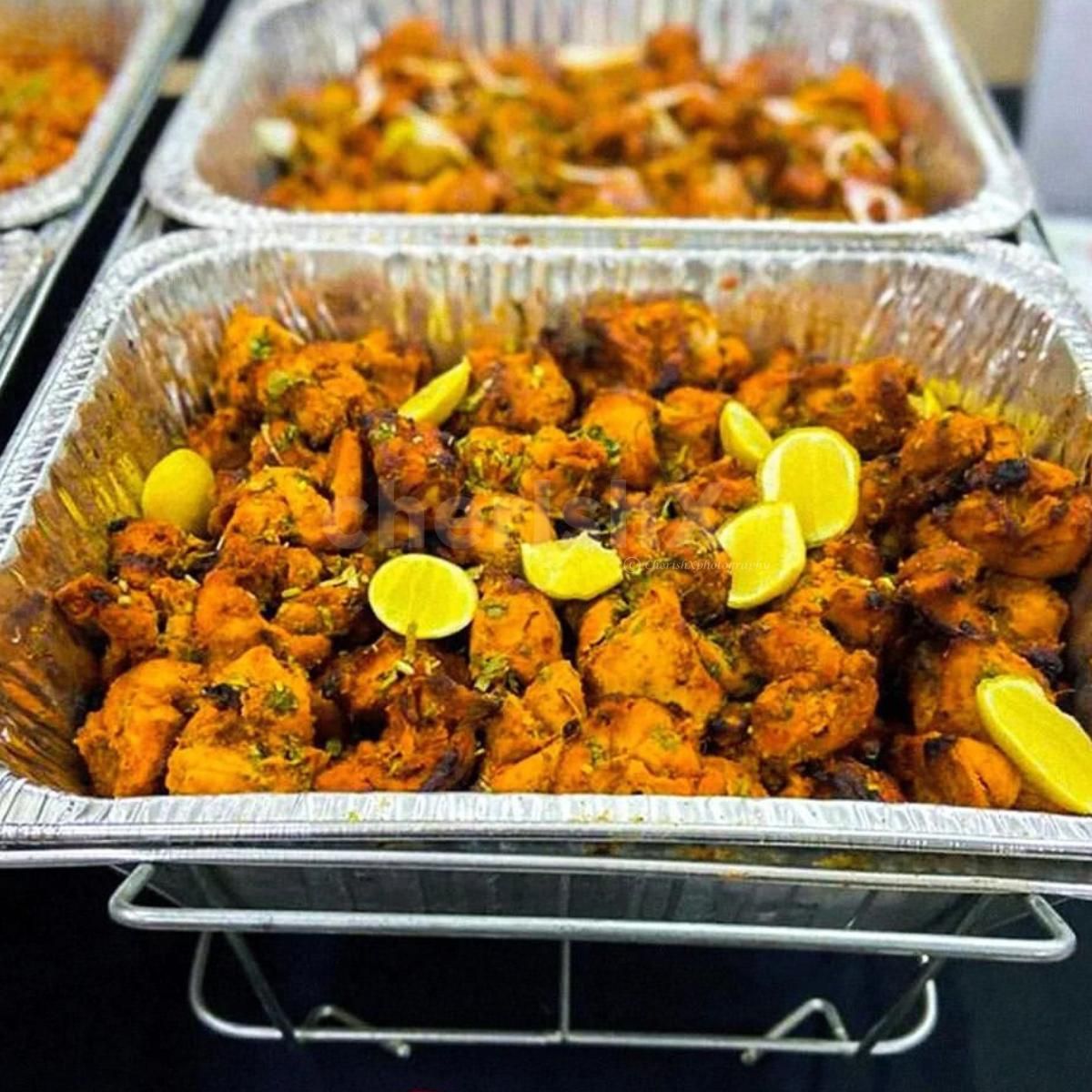 Service: server for 3 hours, counter service, food warmers, aluminum chafing dishes, biodegradable cutlery, and tissue