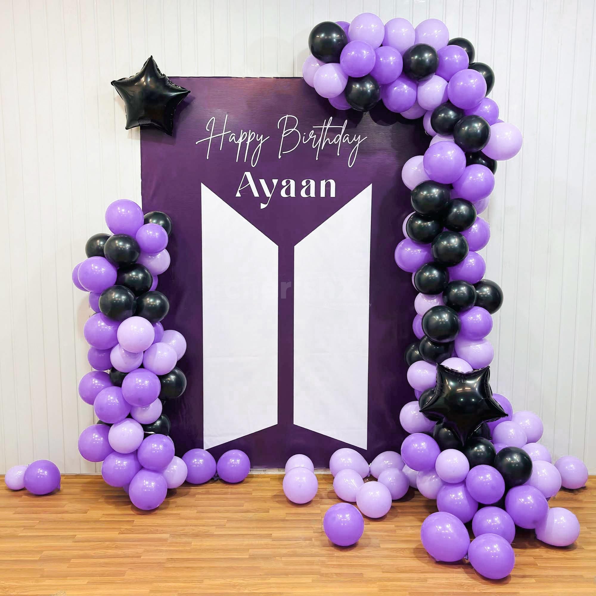 Arch of 150 Balloons- 50 Purple Latex, 50 Black Metallic And 50 Purple Pastel