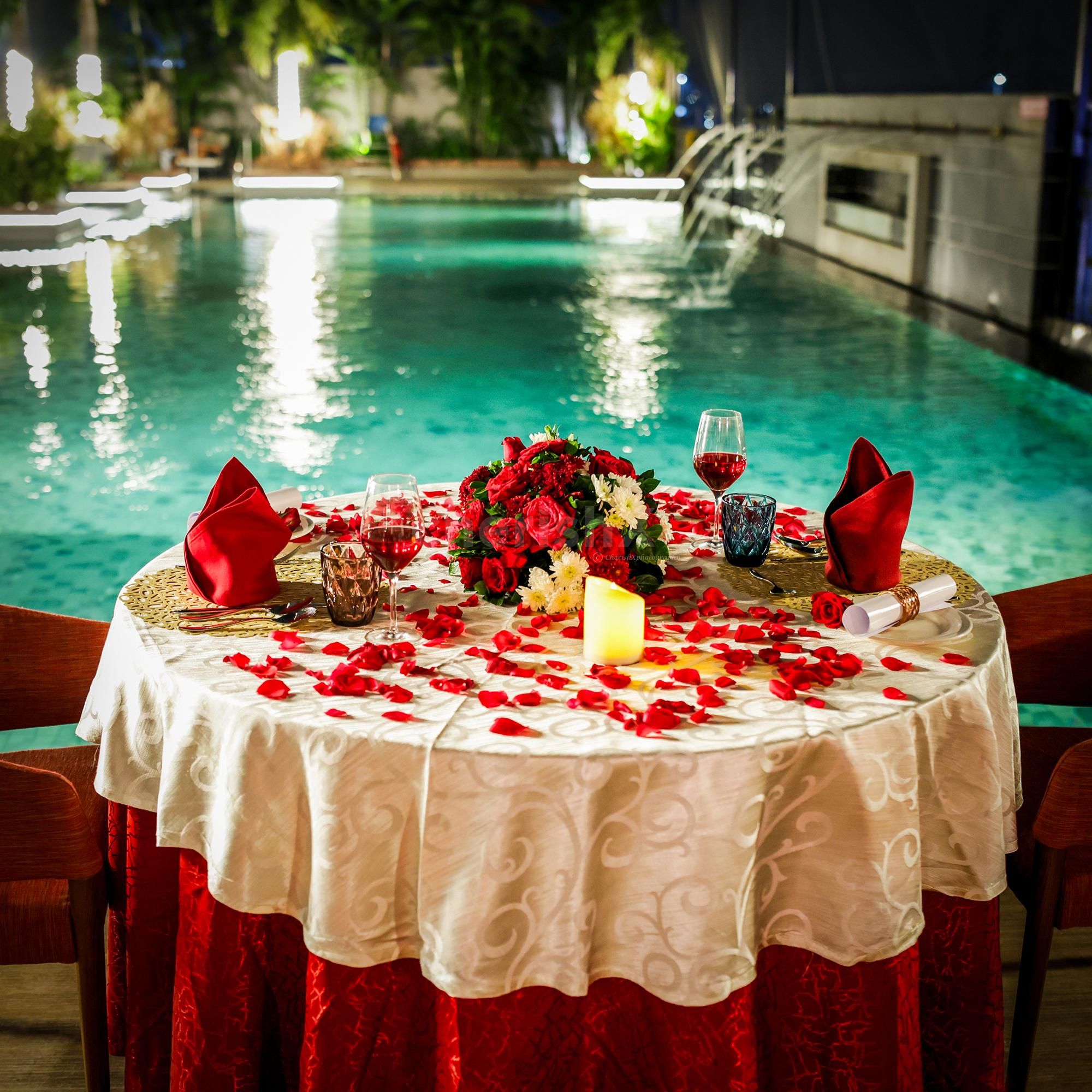 Celebrate love in a decorated table at poolside with a 4-course meal