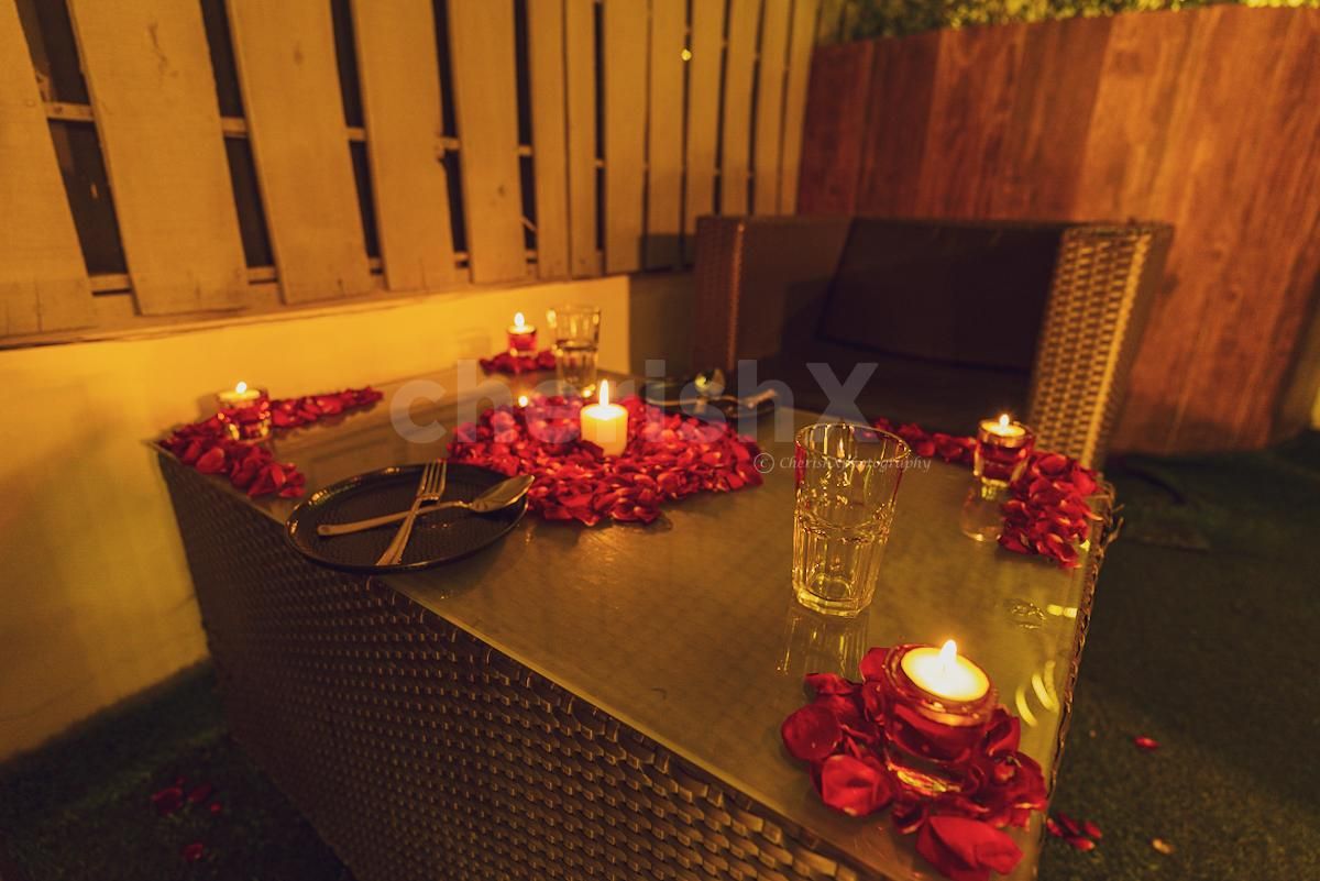 3 course Candlelight dinner in a garden setting in delhi with romantic decoration