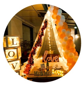 Expert Birthday Decorators often go towards balloons, flowers, fairy lights, and Neon signs for birthday decoration, either on their own or in a mix of materials.