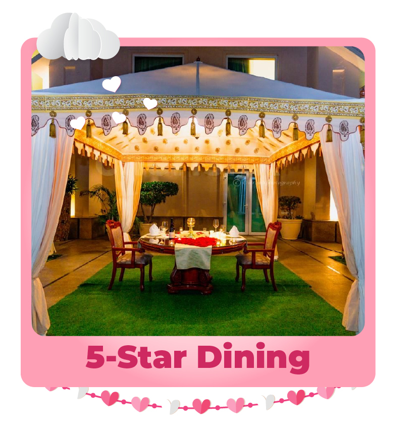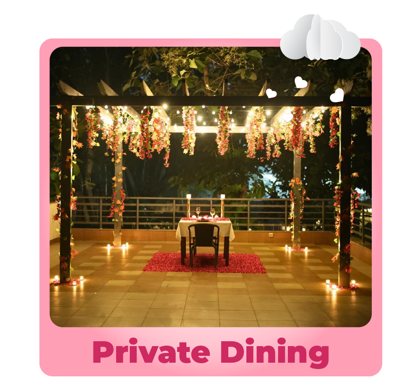 Experience enchanting candlelight dinners in Delhi NCR. Enjoy exquisite decorations, delectable cuisine, and a dreamy ambiance. Choose from a romantic poolside setting, a rooftop escape with breathtaking views, or a private movie setup with a sumptuous dinner. Create unforgettable memories on the perfect date night.