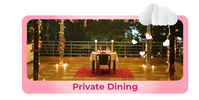 You can plan your date with poolside candle light dinner, rooftop candle light dinner or a private candle light dinner in Delhi NCR . You can make your date much more exciting by booking some customizations such as cake or flowers. You can surprise your special one just where you are!Â