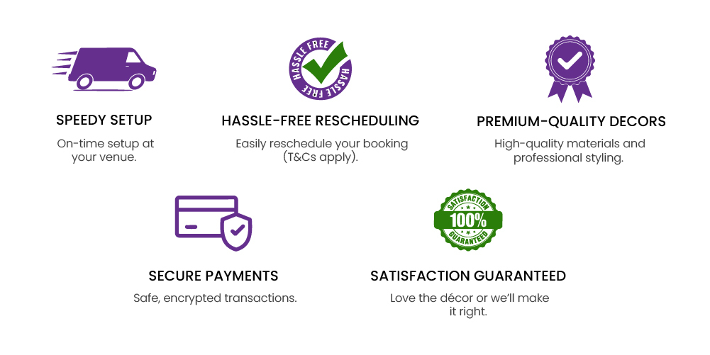 Prices for decoration vary depending on the package and customization options. Please check the Packages for detailed pricing. It starts from Rs.1999/-